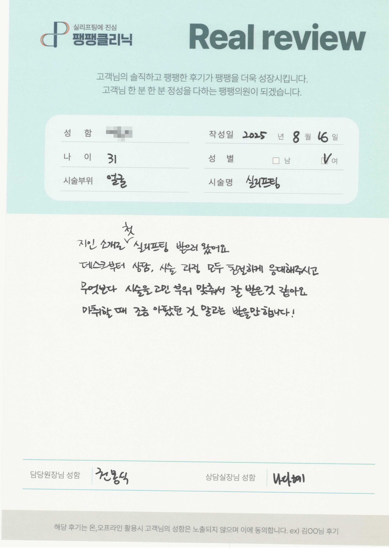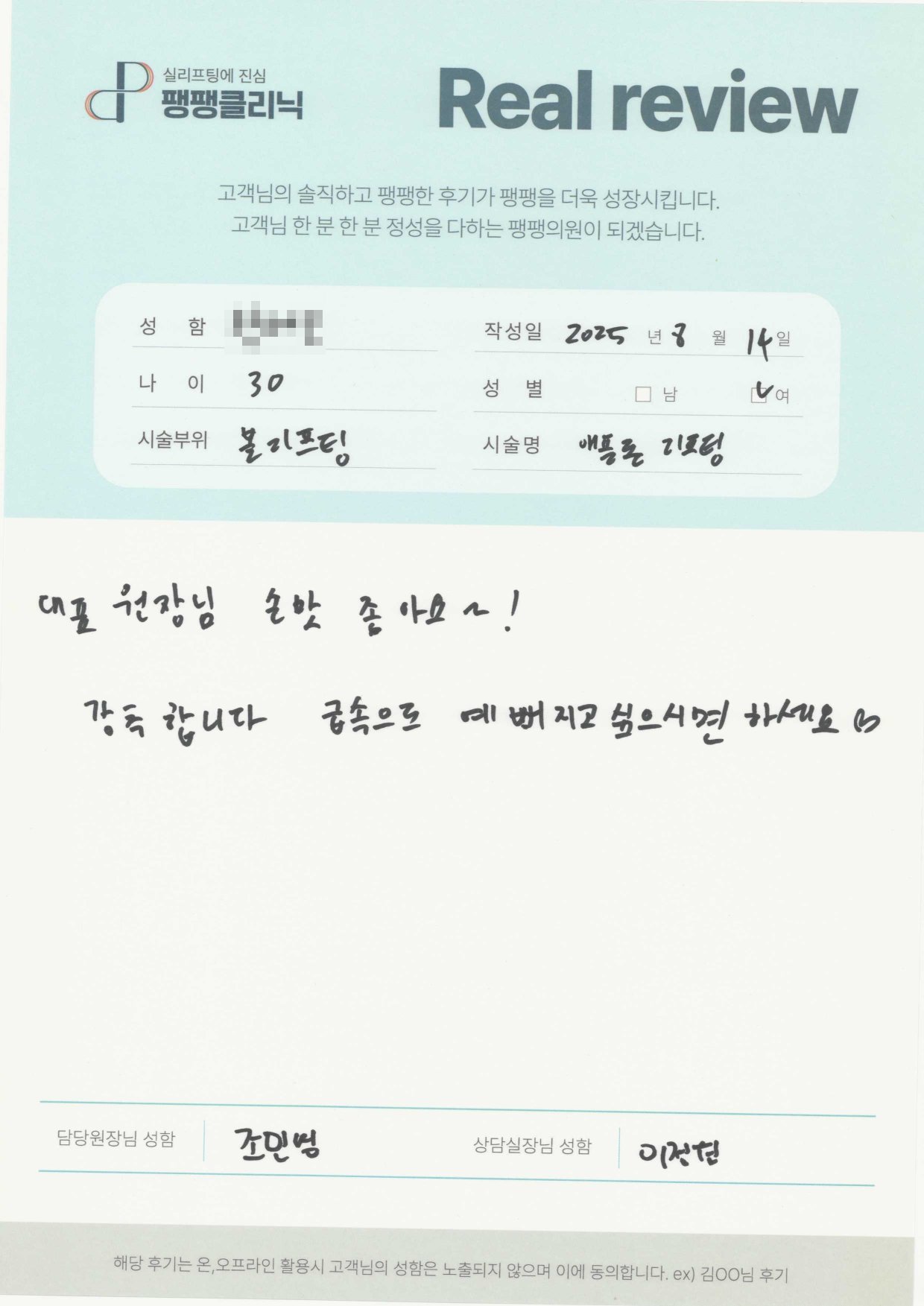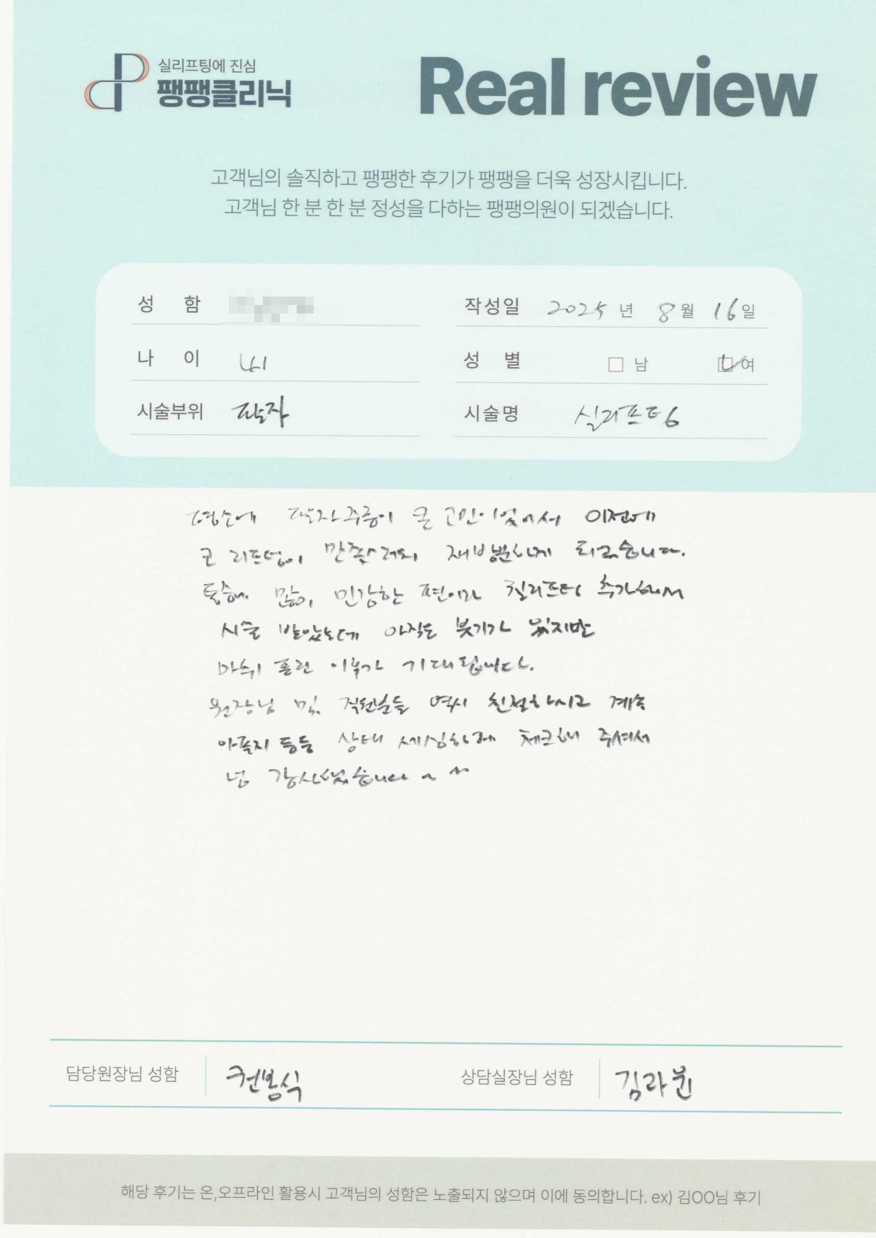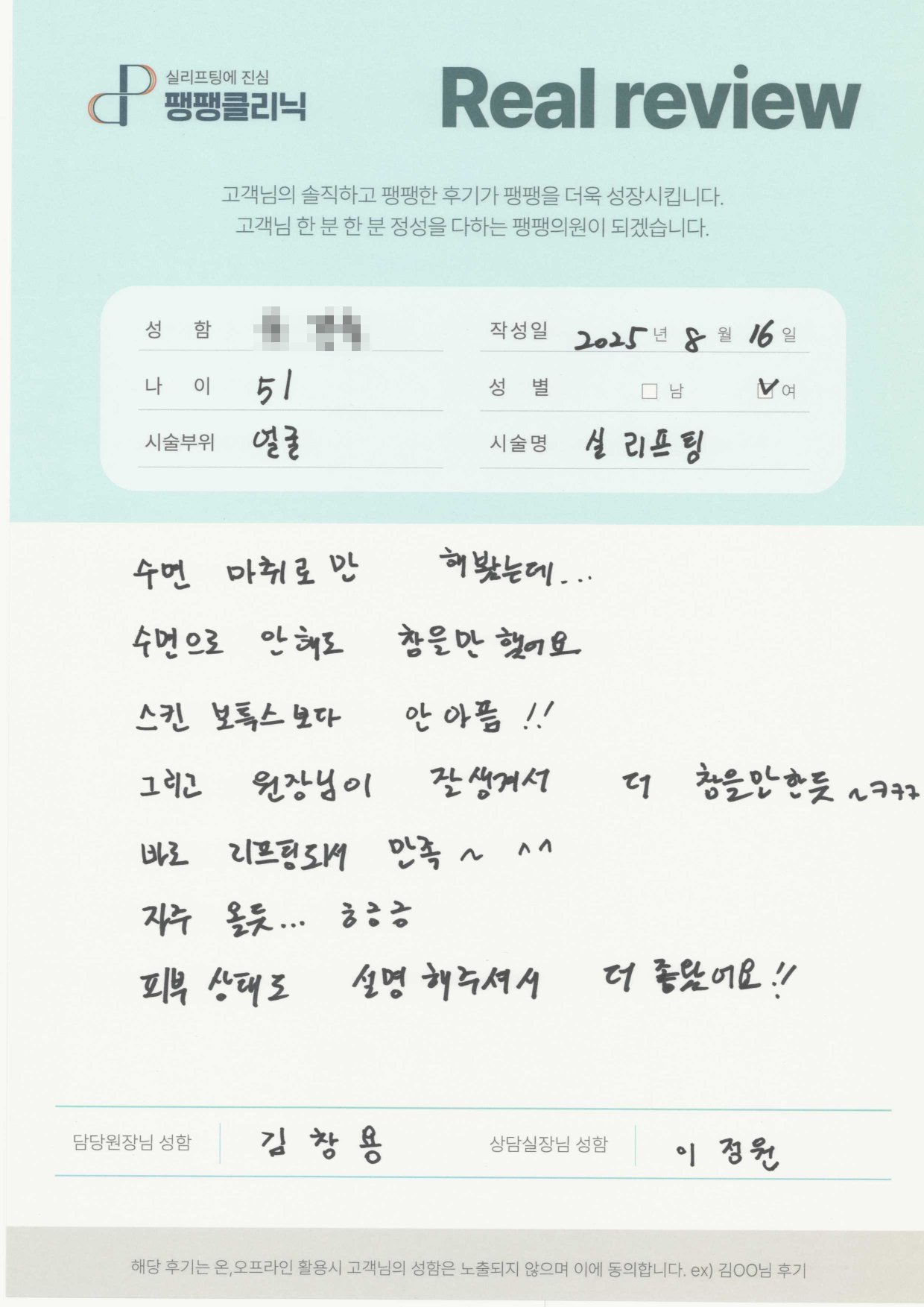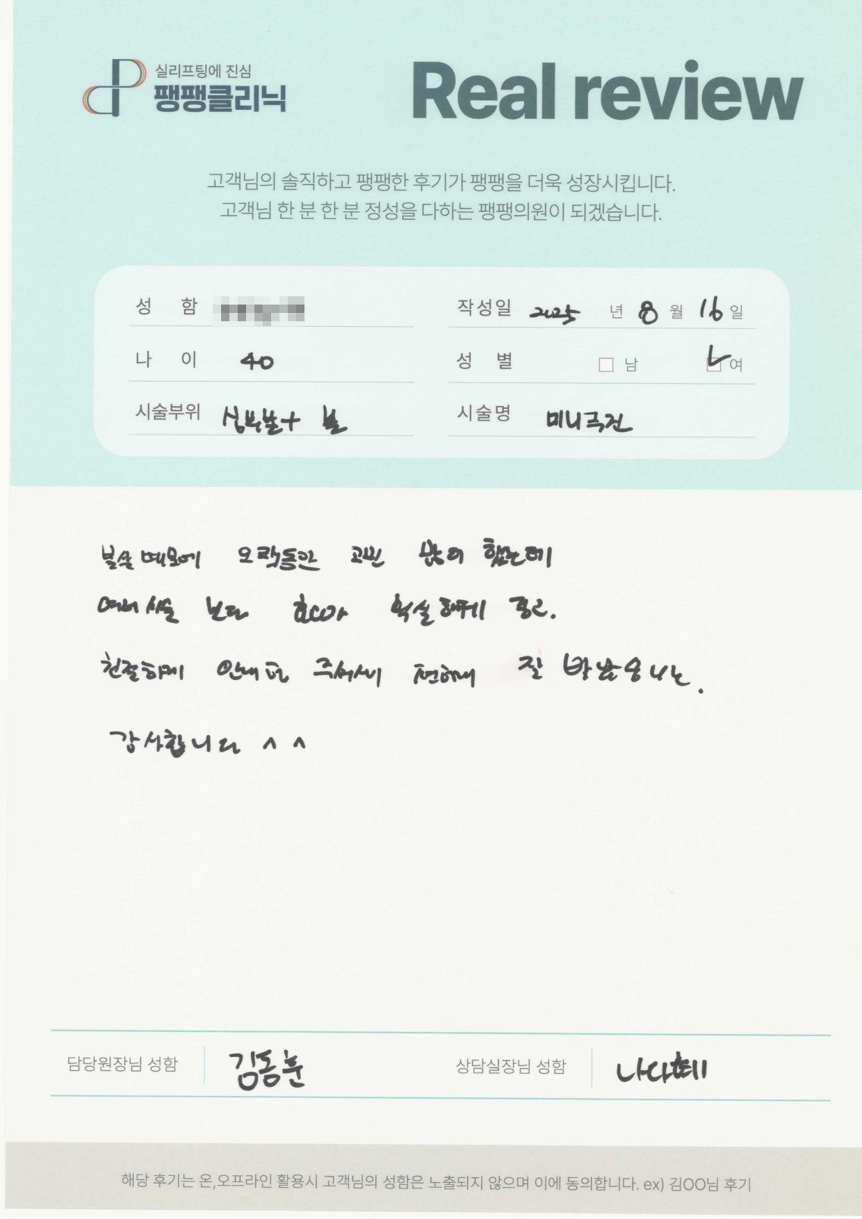 고객님들이 직접 말해주시는 팽팽클리닉의 차이를 확인해보세요.