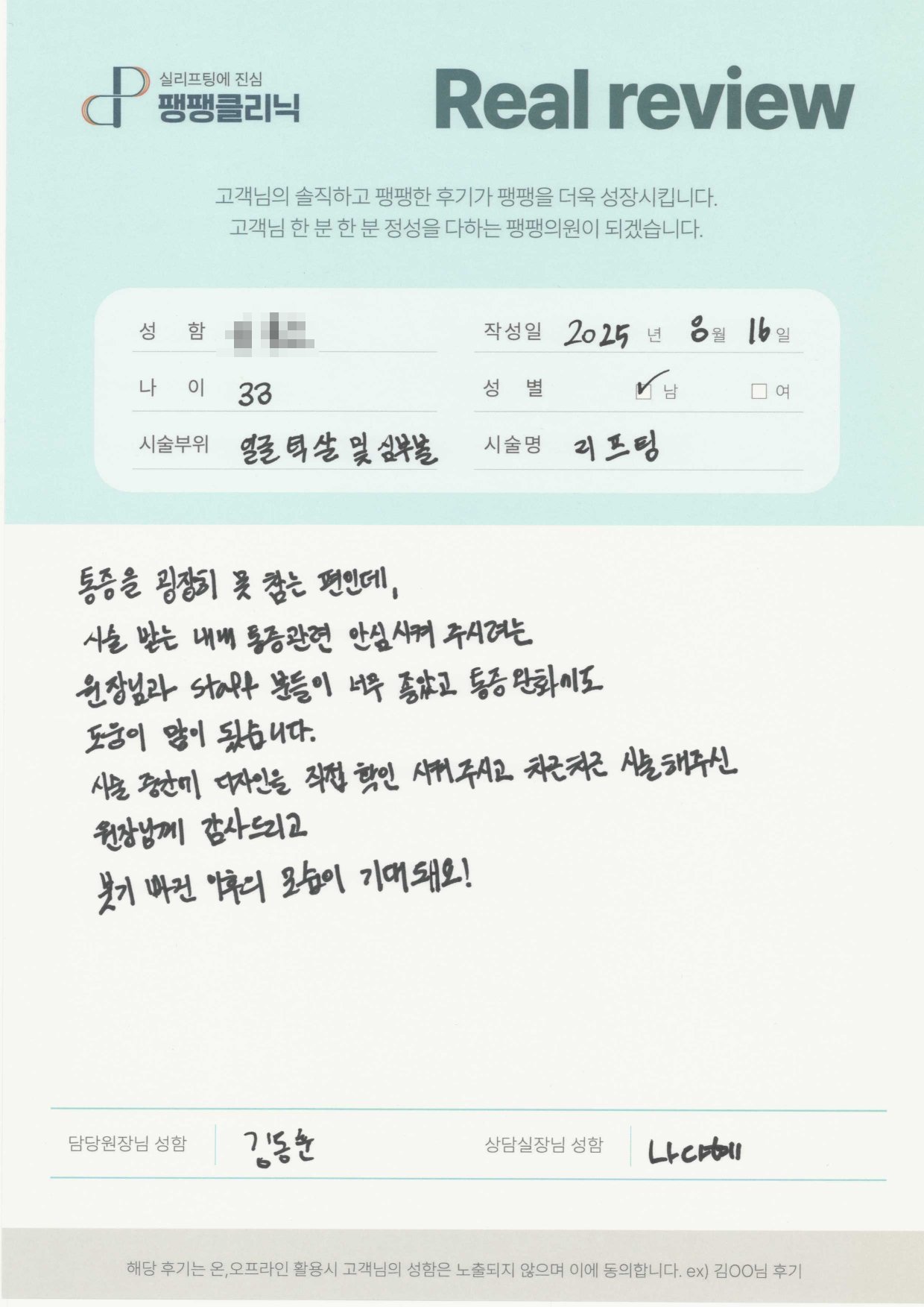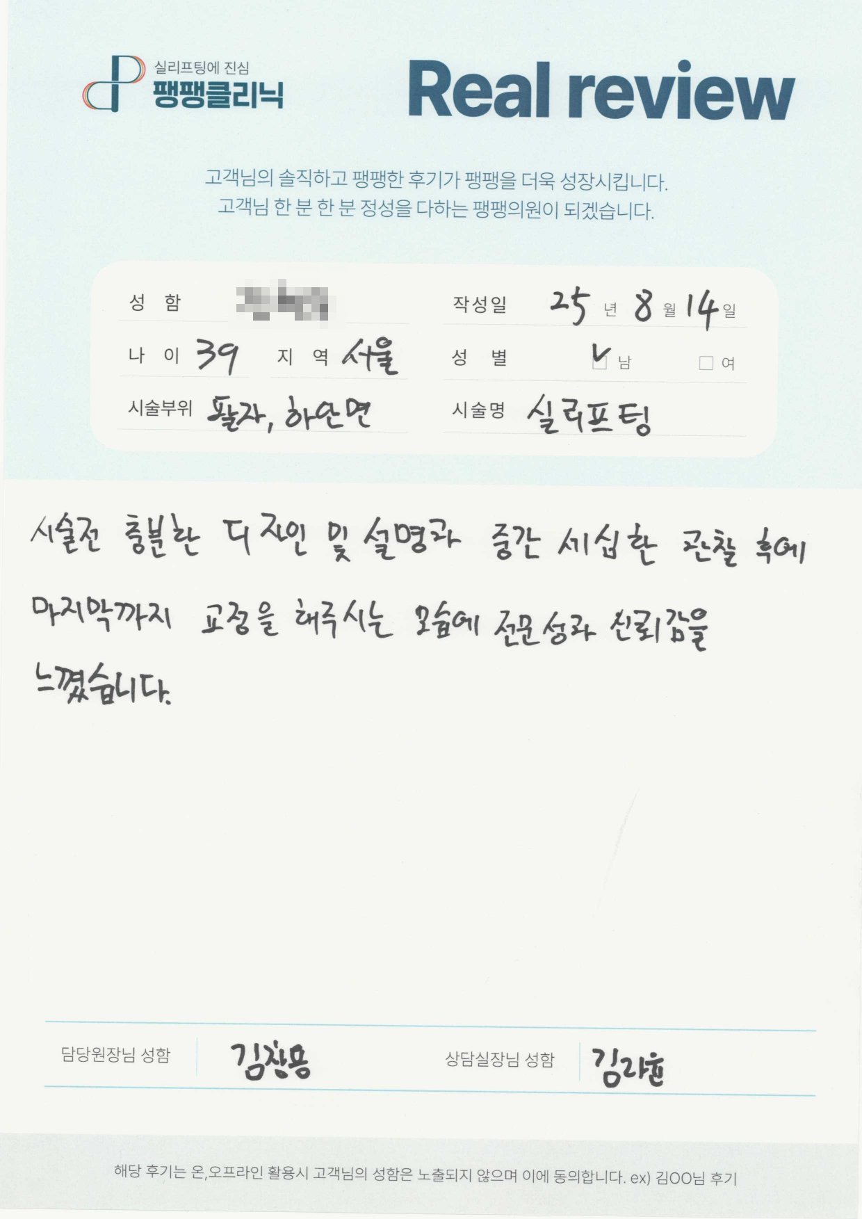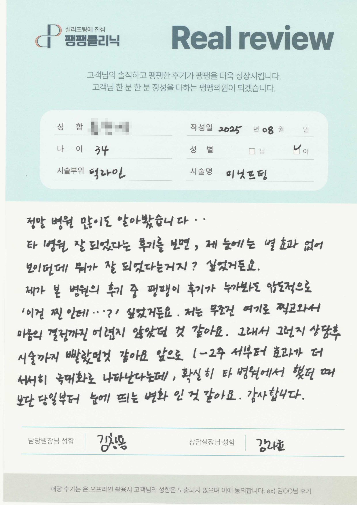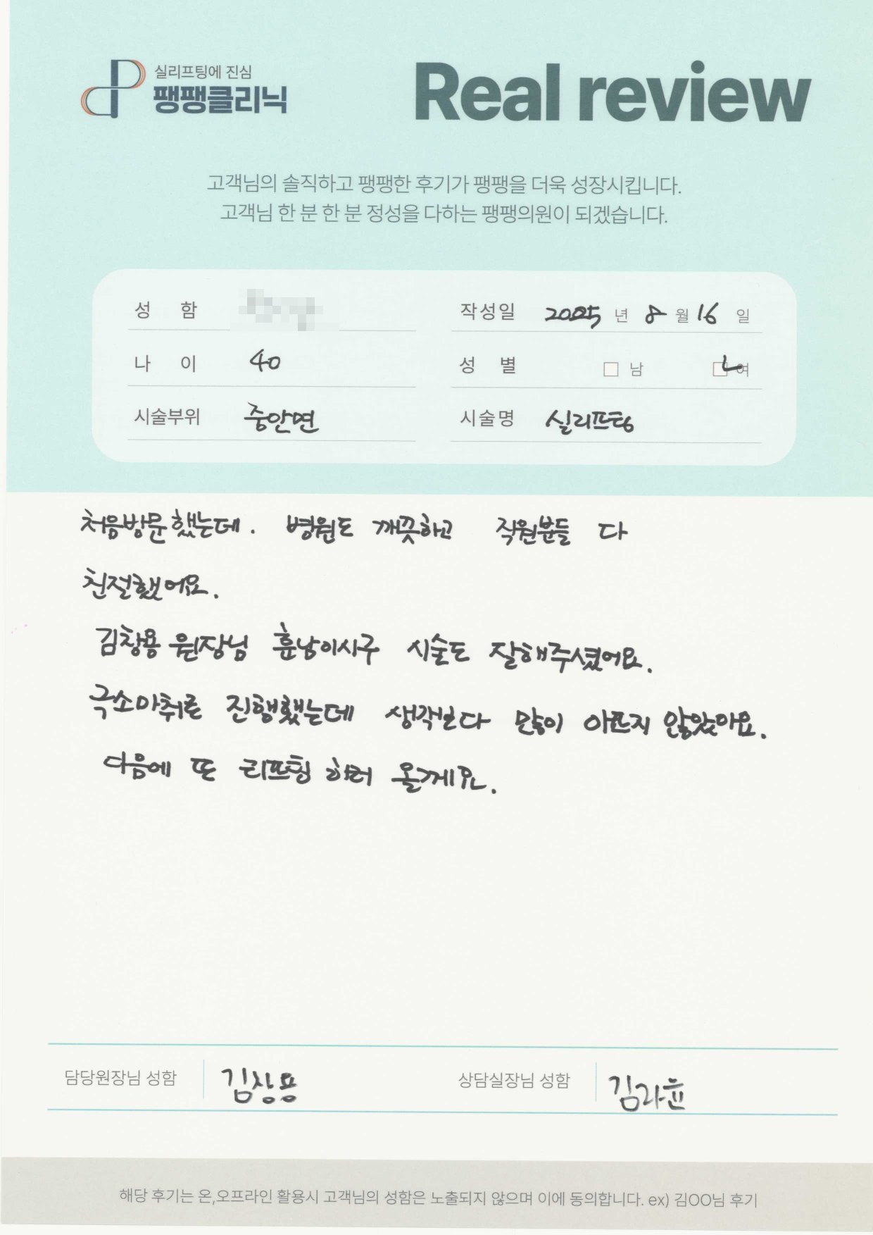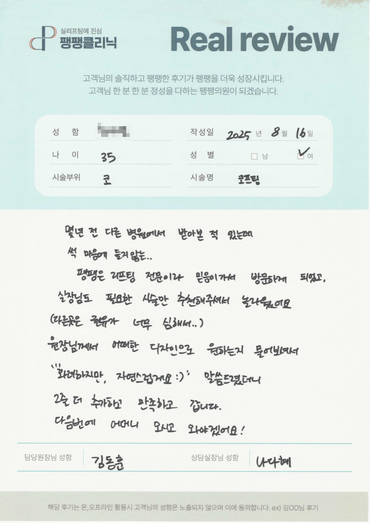 고객님들이 직접 말해주시는 팽팽클리닉의 차이를 확인해보세요.